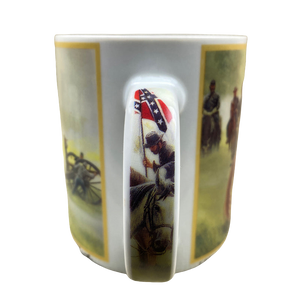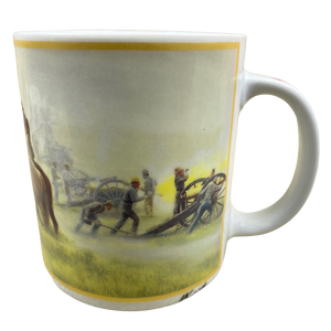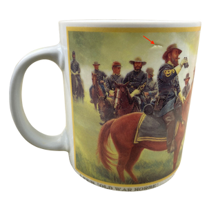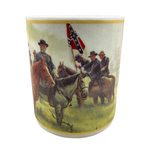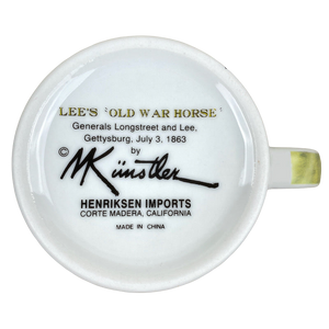 This mug features the painting "Lee's Old War Horse" by Mort Kunstler wrapping around its exterior surface and on the handle.