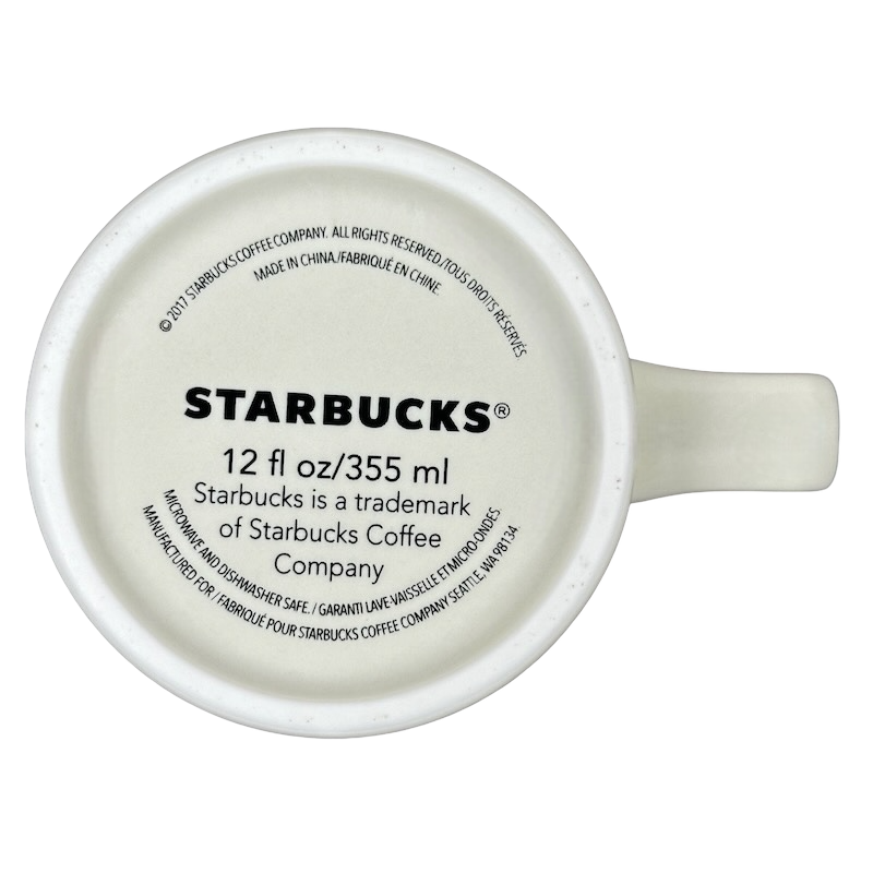 "STARBUCKS" is printed horizontally on the rear surface near the handle in a large black font.