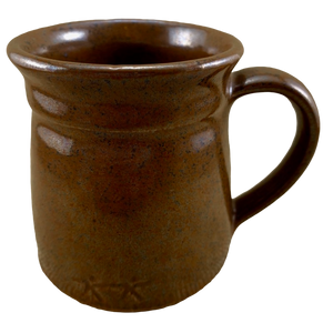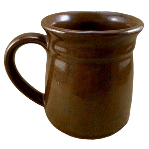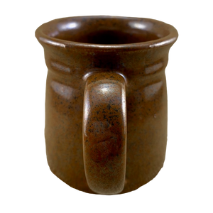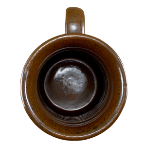The finish on this mug both inside and on its exterior is primarily brown but there are areas of black visible just underneath the brown.