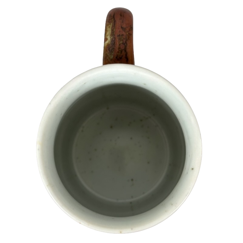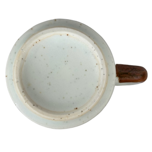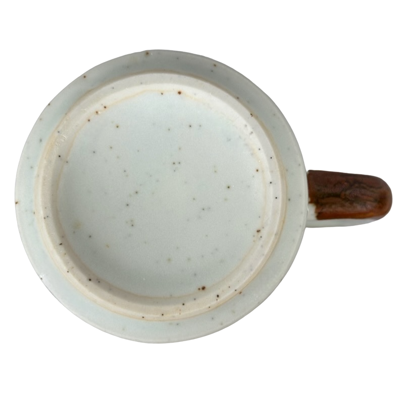 This mug features a lightly speckled finish on its interior and exterior surface.