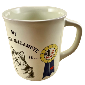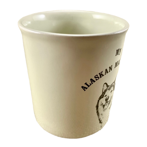 Features an image of an Alaskan Malamute dog on its front surface with the following printed above it: