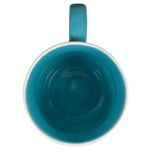 The interior bottom surface is not completely covered in blue paint evenly. There is one spot that is much lighter appearing towards white. Please see the fifth photo.