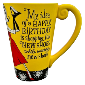 Printed on one side; "My Idea Of A Happy Birthday Is Shopping For New Shoes While Wearing New Shoes"