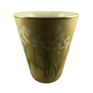 Features artwork wrapping around the exterior surface consisting of white flowers