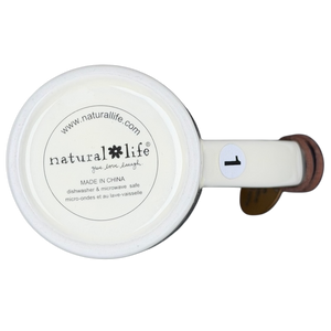 The bottom confirms this as an authentic Natural Life mug, complete with the brand’s logo, website, and “give. love. laugh.” slogan. It is both dishwasher and microwave safe for easy everyday use. With its soothing message and artisanal feel, this mug makes a meaningful gift for someone special—or a comforting daily reminder to surround yourself with love and simple joys.