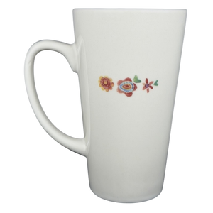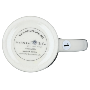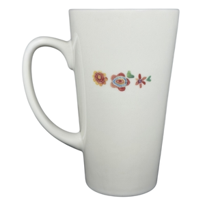 Delicate flowers in cheerful reds, yellows, greens, and blues dot the design, giving it a handcrafted, artistic feel. A small row of blossoms on the back adds a sweet finishing touch, making the mug look lovely from any angle. Its tall, easy-to-hold shape feels comfortable in the hand, while the smooth cream interior keeps the design clean and inviting. The Natural Life mark on the bottom notes that the mug is both microwave and dishwasher safe, adding convenience to its heartfelt charm.