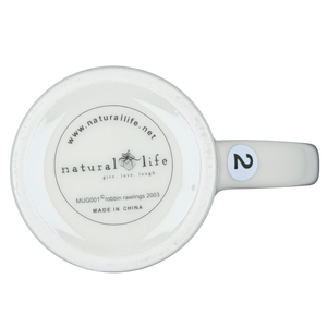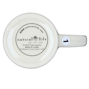 The mug’s tall, tapered form sits comfortably in the hand, and the smooth ivory interior creates a light, clean backdrop for your favorite beverage. Whether it’s morning coffee, afternoon tea, or a calming evening drink, this mug adds a touch of positivity and artful charm to your daily routine. The bottom stamp confirms it as an authentic Natural Life piece, model MUG001, includes Copyright © Robbin Rawlings, and notes that it is both dishwasher and microwave safe for everyday convenience.