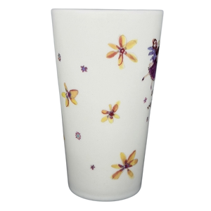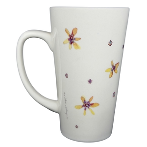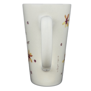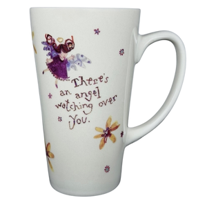 This charming Natural Life tall ceramic mug features a sweet, uplifting message: “There’s an angel watching over you.” The front showcases an adorable illustrated angel in soft purples and blues, surrounded by tiny flowers and warm, whimsical accents. The artwork continues around the mug with scattered floral designs in warm yellows and reds, adding a handcrafted feel that reflects the signature style of artist Robbin Rawlings. The tall, tapered shape and smoothly curved handle make it comfortable to hold, while the soft off-white matte finish gives it a cozy, heartfelt look.