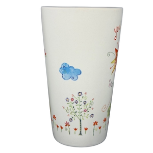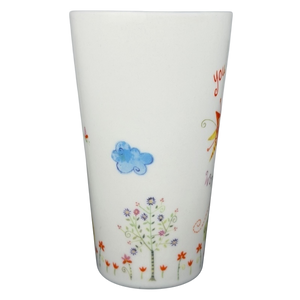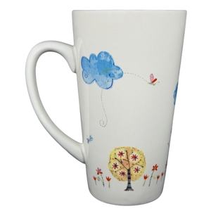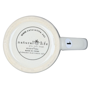The design continues around the mug with drifting blue clouds, more blooming flowers, and delightful details that give it a peaceful, uplifting feel. Its tall, tapered shape is comfortable to hold, and the interior has a clean, glossy finish perfect for coffee, tea, or cocoa. The bottom stamp confirms it as an authentic Natural Life piece, MUG019, made in China, and both microwave and dishwasher safe for everyday convenience. This mug makes a heartfelt gift for someone special—or a daily reminder of love and appreciation just for you.