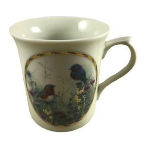 Features the same artwork on the front and back consisting of birds sitting in branches among leaves and flowers.