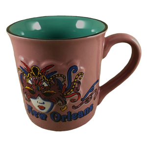 Features artwork on the front surface consisting of an embossed Mardi Gras masquerade mask.