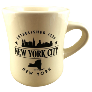 It features the same artwork on its front and rear surface. This artwork depicts the New York City skyline with "ESTABLISHED 1624" printed above it and "NEW YORK CITY" printed below it.