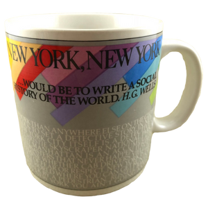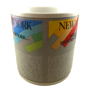 Features artwork wrapping around its exterior surface consisting of words and phrases having to do with New York.