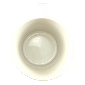 This mug has no cracks, scratches, stains or crazing. There are a few tiny white nicks on the front and rear surface. They are extremely insignificant and cannot be seen in the photos due to their small size. Overall this mug is in excellent condition.