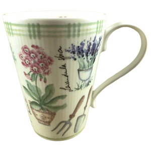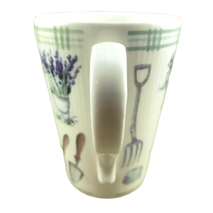 Features images wrapping around its exterior surface having to do with various aspects of gardening.