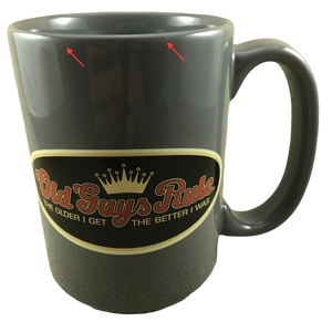 Condition note: this mug has no chips, cracks, or crazing. There are a few fine scratches on the front upper surface. Please see the red arrows pointing to these in the last photo.