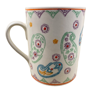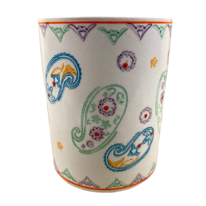 Features a beautiful paisley pattern on its exterior surface.Also features embossed red beads scattered around its exterior surface.