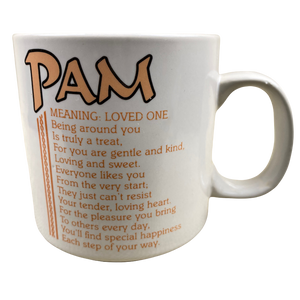 Features the name PAM printed in a large font on then front upper surface. Directly underneath this is a poem about the name PAM.