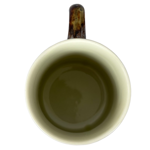 Copy 1: This mug is pre-owned and reconditioned. This mug has no chips, cracks, scratches, stains or crazing. There is a small raised spot under the handle. It can be seen under and to the right of the circular 1 sticker.