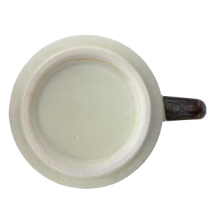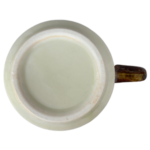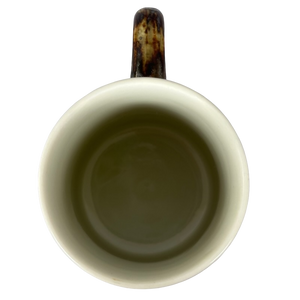Copy 2: This mug is pre-owned and reconditioned. This mug has no chips, cracks, scratches, stains or crazing. There is a small orange dot on the interior bottom surface. This was not captured in the photos. There is a small raised line under the handle. It can be seen under and to the right of the circular 2 sticker. There is a small indentation in the bottom surface, please see the last photo.
