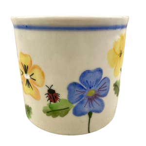 Features beautiful floral and insects artwork wrapping around its exterior surface.