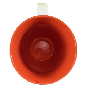 Condition note: there is an approximately 1 centimeter imperfection on the top of the rim where the orange paint is absent. There are 2 super tiny white dots on the rim. Please see the red arrows pointing to these in the 5th photo. There is some very minor wear on the bottom rim, please see the last photo for a look at this.