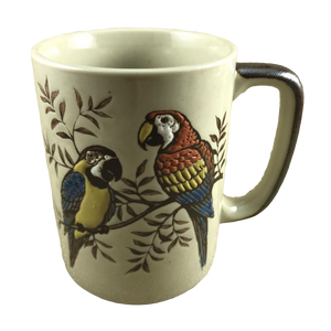 Artwork on the front depicts 2 parrots sitting on a branch.