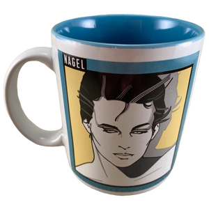 Features the same artwork on its front and rear surface consisting of a painting of a woman by Patrick Nagel.