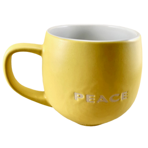 Features "PEACE" etched in white into its yellow rear surface.