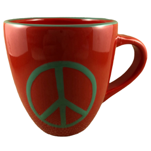 Features a large green peace sign on its front surface.
