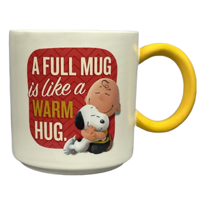 Features Charlie Brown and Snoopy hugging on its front surface.
