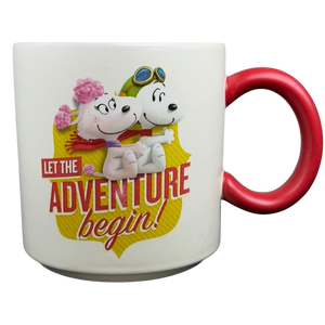 This official Hallmark Peanuts Movie ceramic mug captures the spirit of exploration with a delightful illustration of Snoopy in his flying ace gear alongside Fifi. The front displays the inspiring phrase "Let the adventure begin!" set against a bright yellow graphic, perfectly complemented by a bold red handle and a matching red interior glaze. Produced in 2015 for the Blue Sky Studios film release, this durable stoneware piece is designed for everyday convenience and is both microwave and dishwasher safe. Whether as a gift for a dedicated fan or a cheerful addition to your own collection, this mug brings a touch of cinematic nostalgia to every sip.
