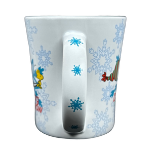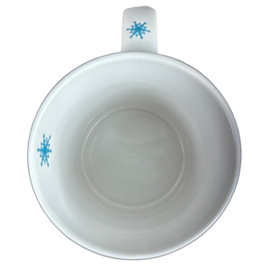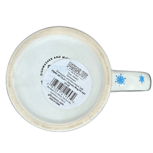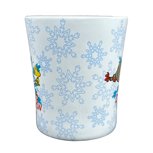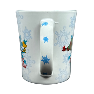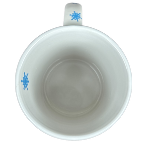 There are snowflakes wrapping around the exterior surface, on the handle, and a single one on the rear interior upper surface.