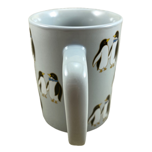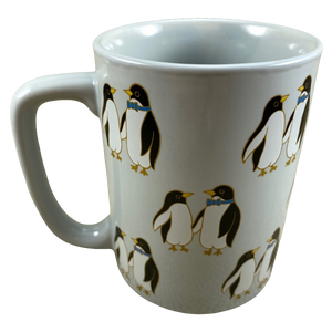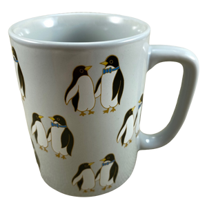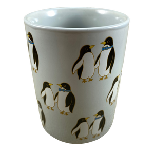 Features artwork wrapping around its exterior surface consisting of pairs of penguins.