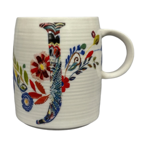 Features a floral pattern wrapping around the exterior surface with the letter "J" printed on the front surface.