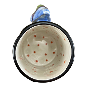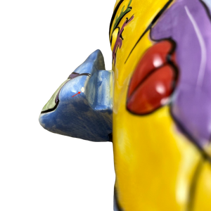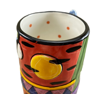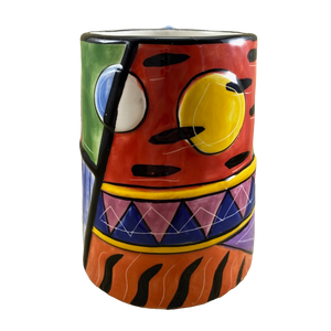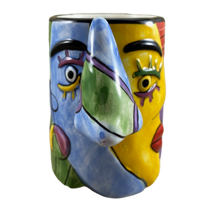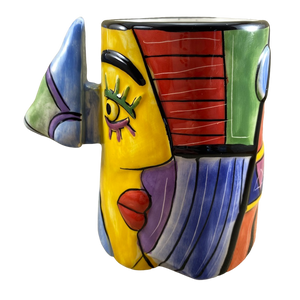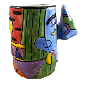 This beautiful mug features embossed Picasso style colorful artwork wrapping around its exterior surface.