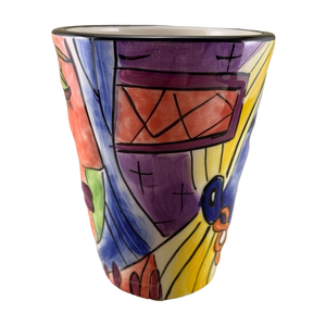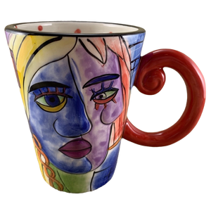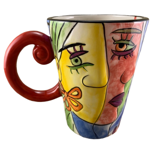 This beautiful mug features Picasso style colorful artwork wrapping around its exterior surface.