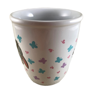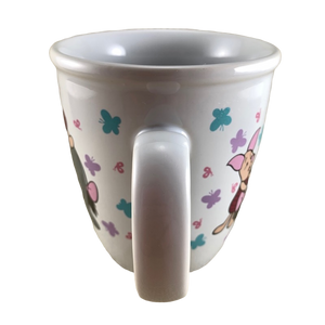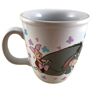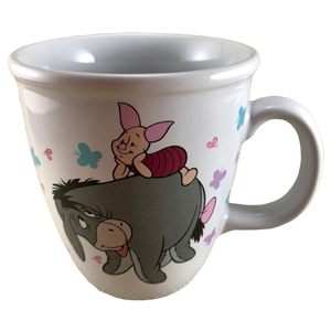 This adorable mug features Piglet sitting on Eeyore's back on its front surface and Piglet holding Eeyore's tail on its rear surface.