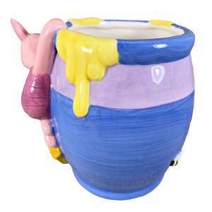 There is embossed honey draped over the rim in several spots and also on the handle.