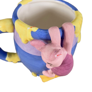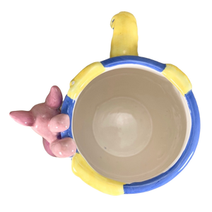 It features a 3D figural piglet on its rear surface hanging from the rim.