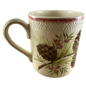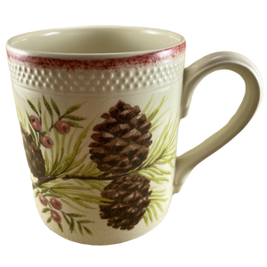 Features the same artwork on its front and rear surface depicting pine cones, pine nuts, and pine needles.