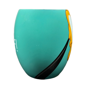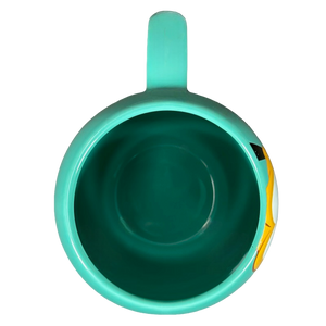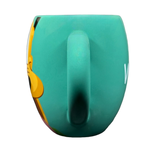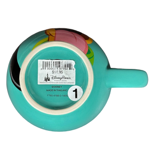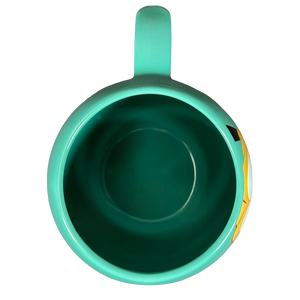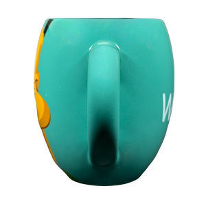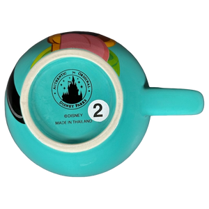 Copy 1: This mug is new with its original sticker still on its bottom surface. There is some sticky residue on the surface of the sticker and the top right corner is missing a bit. This mug has no chips, cracks, scratches, stains or crazing. There is a tiny bit of raised white ceramic material on the interior side wall which was not captured in the photos.