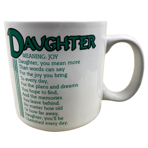 Features the word "DAUGHTER" printed in a large font on its front upper surface. Directly underneath this is a poem about the meaning of the word "DAUGHTER."