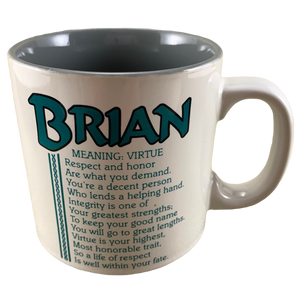 Features the name BRIAN printed in a large font at the top of the front side of the mug. Directly underneath this is a poem about the name BRIAN.