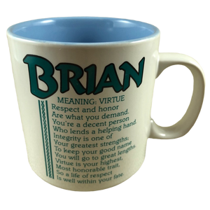 Features the name BRIAN printed in a large font at the top of the front side of the mug. Directly underneath this is a poem about the name BRIAN.