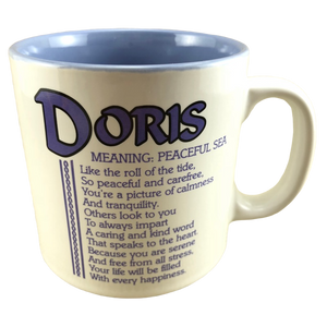 Features the name DORIS printed in a large font at the top of the front side of the mug.