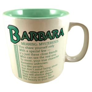 Features the name BARBARA printed in a large font at the top of the front side of the mug. Directly underneath this is a poem about the name BARBARA.