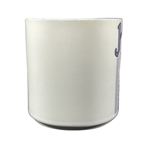 Copy 1: This mug is pre-owned and reconditioned. This mug has no chips, cracks, scratches, stains or crazing. Note the interior color leans more towards purple to match the JULIE font, the photo makes it look somewhat like blue.