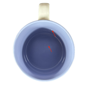 Copy 2: This mug is pre-owned and reconditioned. This mug has no chips, cracks, scratches, stains or crazing. There is a small ceramic bump protruding from the interior bottom surface, please see the fifth photo.