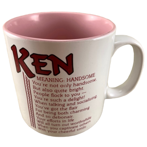 Features the name Ken printed in a large font at the top of the front side of the mug. Directly underneath this is a poem about the name Ken.